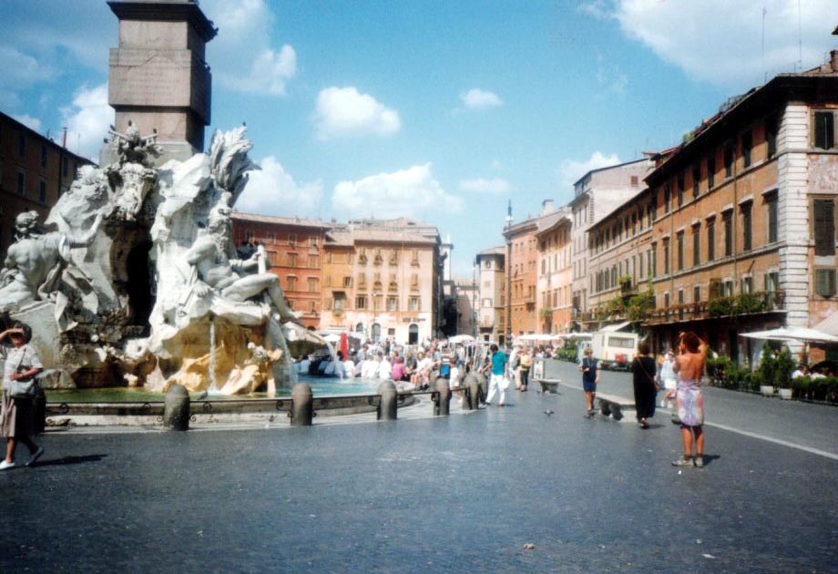 書店の入口という設定は、広場の西側、現在« Restorante TRE SCALINI »とあるところ。